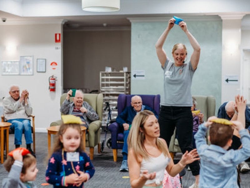 Big Little Buddies’ flagship activity involves weekly music sessions during school terms in aged care centers. These programs connect preschool children with older adults, fostering social skills, empathy, and confidence in children, while reducing loneliness and isolation among aged care residents.